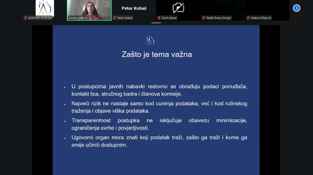 Realizovana je tema ''Higijena e-maila kao ključna kontrola informacijske sigurnosti u skladu s ISO/IEC 27001'' u digitalnom okruženju putem Zoom platforme, 15.04.2026. godine, u okviru Općeg programa stručnog usavršavanja za 2026. godinu, za zaposlenike u organima državne službe Federacije Bosne i Hercegovine.