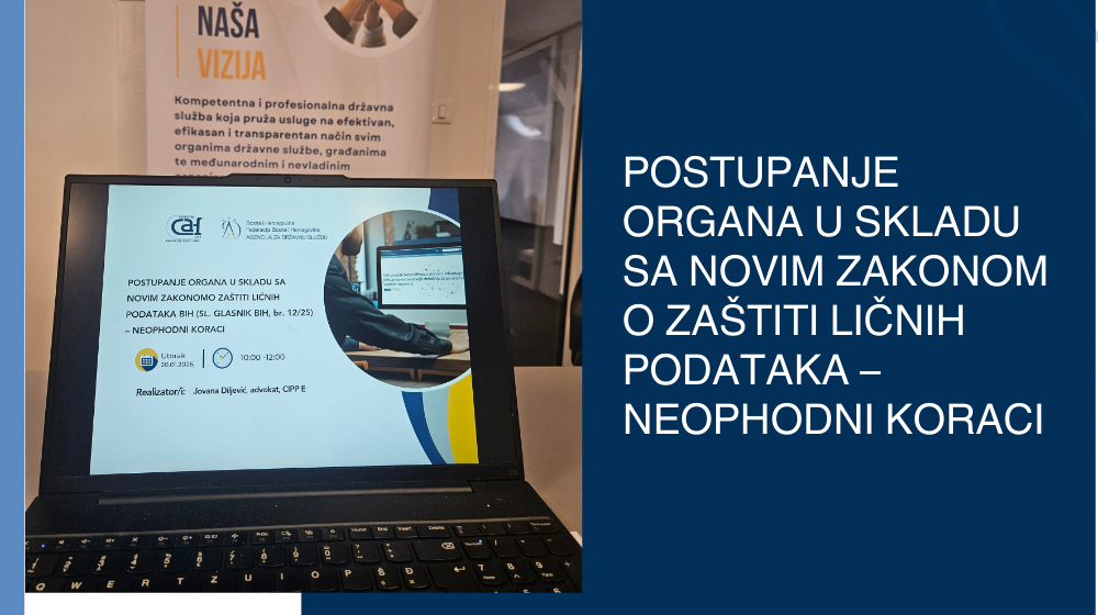 Agencija za državnu službu Federacije BiH je, u saradnji sa Agencijom za zaštitu ličnih podataka BiH, dana 26.11.2025. godine, uspješno je realizovala drugi po redu online program stručnog usavršavanja pod nazivom „Službenik za zaštitu ličnih podataka – imenovanje, status, zadaci“.